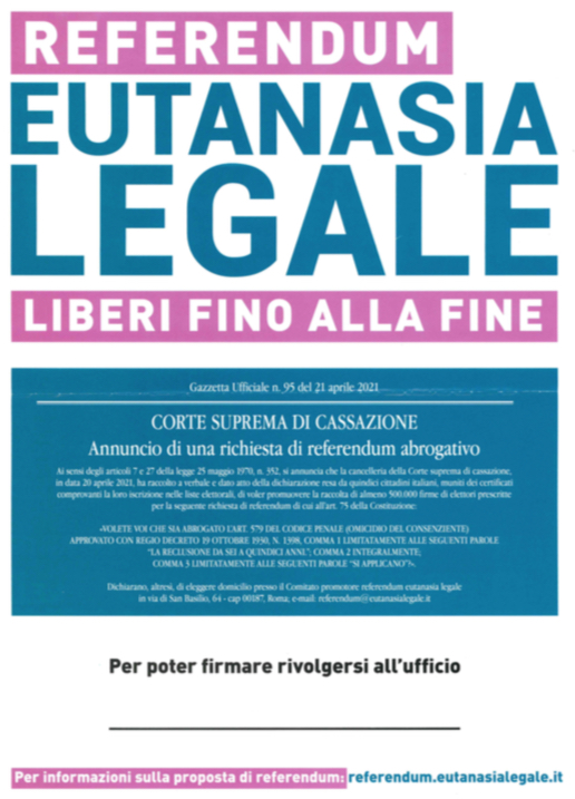 Firma Per Il Referendum Eutanasia Legale from www.comune.borgosandalmazzo.cn.it L'italia va male da quando hanno approvato l'aborto. Eutanasia legale, la raccolta firme si sposta a laveno. Insomma, per farla breve quella dell'eutanasia legale come soluzione per venire incontro alle esigenze o ai diritti dei cittadini è solo una grande, grandissima bufala. L'iniziativa di un referendum per rendere legale l'eutanasia è stata lanciata dall'associazione luca coscioni dopo anni di proposte di legge popolari non prese in considerazione dal parlamento. Leggi le anteprime, gli approfondimenti, le intervisite e le foto sull'argomento: Bisogna far passare il messaggio che si tratta di un. Liberi, liberi fino alla fine. L'eutanasia attualmente in italia c'è, ma non è legale.